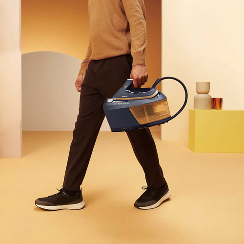 این دستگاه یک بخارگر-اتو ژنراتوری قدرتمند و در عین حال جمعوجور از فیلیپس است که با ترکیب فناوری پیشرفته و طراحی کاربرپسند، تجربهای حرفهای و ایمن از اتوکشی را فراهم میکند. فناوری OptimalTEMP به کاربر این امکان را میدهد تا بدون نیاز به تنظیم دستی دما، تمامی پارچههای قابل اتوکشی را بدون نگرانی از سوختگی اتو کند. خروجی بخار مداوم با توان 130 گرم در دقیقه و بخار لحظهای (Steam Boost) تا 600 گرم، همراه با فشار بالا در حدود 8 بار، چین و چروکهای عمیق را بهسرعت از بین میبرد. این اتو به لطف تکنولوژی ProVelocity با طراحی جمعوجور و سبکتر عرضه شده است، بدون آنکه از قدرت بخاردهی آن کاسته شود. مخزن بزرگ و قابل جداسازی با ظرفیت 1.8 لیتر امکان پر کردن در حین کار را فراهم میکند و سیستم هوشمند رسوبزدایی Smart Calc Clean همراه با یادآور تمیزکاری، عمر دستگاه را افزایش میدهد. صفحهی SteamGlide Advanced با پوشش نانو-تیتانیوم، لغزندگی عالی، مقاومت بالا در برابر خش و عملکردی سبک و روان را ارائه میدهد. علاوه بر این، امکاناتی مانند خاموشی خودکار (Auto shut-off)، قفل ایمنی برای حمل (Safety carry lock)، محفظه مخصوص برای نگهداری کابل برق و شلنگ، آمادهبهکار شدن سریع در حدود 2 دقیقه و فناوری ضدچکه (Drip Stop) راحتی و ایمنی بیشتری را تضمین میکند. از نظر بهرهوری انرژی، این محصول با صرفهجویی تا 30٪ انرژی و استفاده از 35 تا 40 درصد پلاستیک بازیافتی، انتخابی پایدار و سازگار با محیطزیست به شمار میآید.