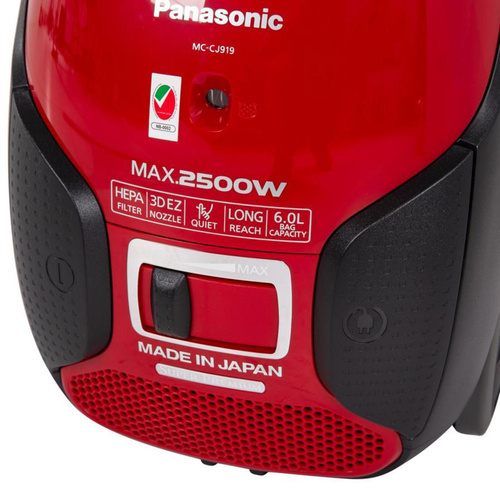 سری «CJ910» جاروبرقیهای شرکت «پاناسونیک» از جمله بهترین و مطمئنترین محصولات موجود در بازار هستند. پاناسونیک برای طراحی و تولید مدلهای این سری تحقیقات و نیازسنجیهای زیادی انجام داده است تا بتواند نیازهای کاربران را به بهترین شکل ممکن پاسخ دهد. مدل «MC-CJ919» یکی از قدرتمندترین محصولات این سری بوده که به موتوری 2500 واتی مجهز شده است. درحالحاضر جاروبرقیهای بسیار کمی را میتوان یافت که به چنین موتور قدرتمندی مجهز باشند. مدلهای سری CJ910 از لحاظ تولید صدا از جمله برترین محصولات موجود در بازار هستند و با اطمینان میتوان آنها را از ساکتترین جاروبرقیهای حاضر بهحساب آورد. این مدل یک فیلتر HEPA جهت تصفیهی هوا دارد و تمام ویژگیهای برتر این سری همچون قابلیت جداسازی پارویی از لوله را برای کاربر به ارمغان میآورد.