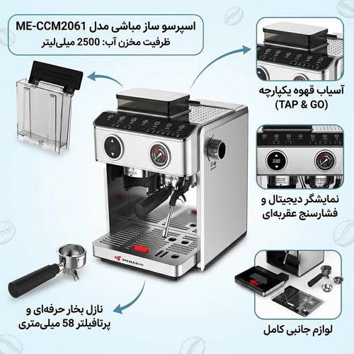 خرید اینترنتی اسپرسو ساز 2500 میلیلیتر مباشی مدل ME-CCM2061 با رنگبندی استیل به همراه مقایسه، بررسی مشخصات و لیست قیمت امروز در فروشگاه اینترنتی دیجیفای